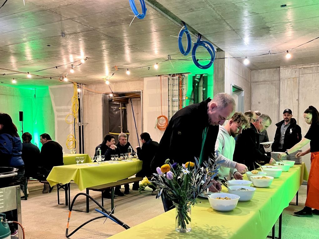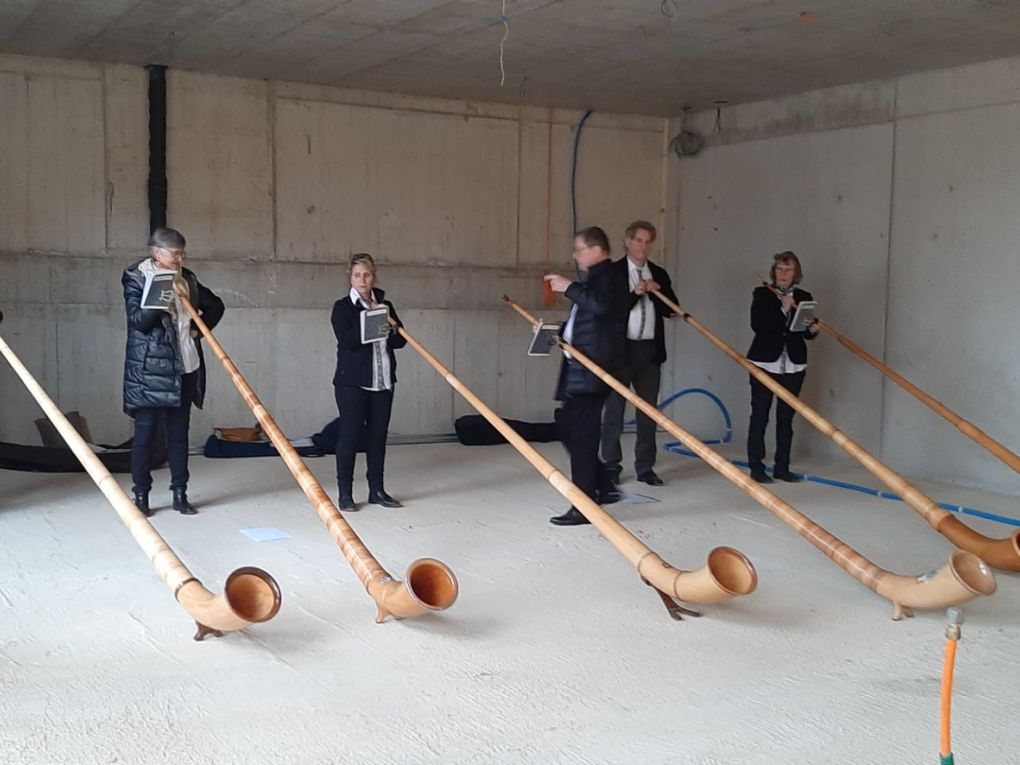 Reinhold Mathys sowie die Architekten Jürg Hochuli und Theo Schnider würdigten die Leistungen und Umsetzungen aller Beteiligten. Für feierliches Ambiente sorgte die Alphorngruppe Roggwil. Für's leibliche Wohl reichte das Team von Cucina Arte Getränke, vielfältige Salate und leckere vegetarische und fleischige Grillspezialitäten.