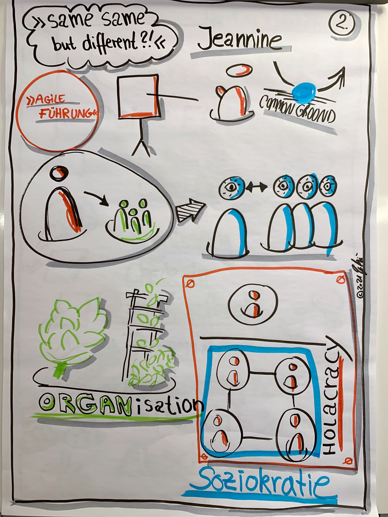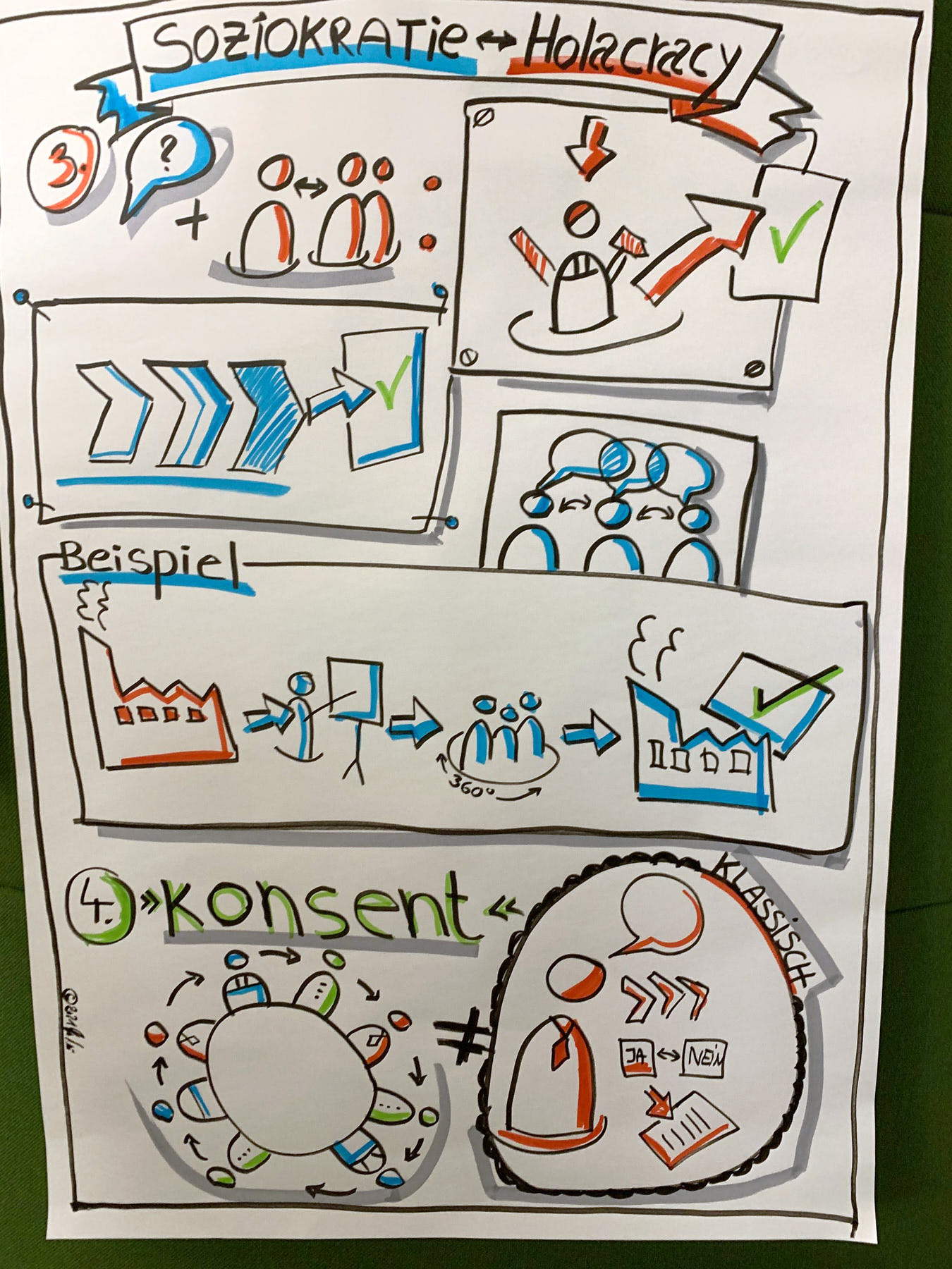 Wie sich das anfühlt, konnte sie aus eigener Praxiserfahrung berichten und ging dabei differenziert auf die Modelle Soziokratie und Holacracy ein.